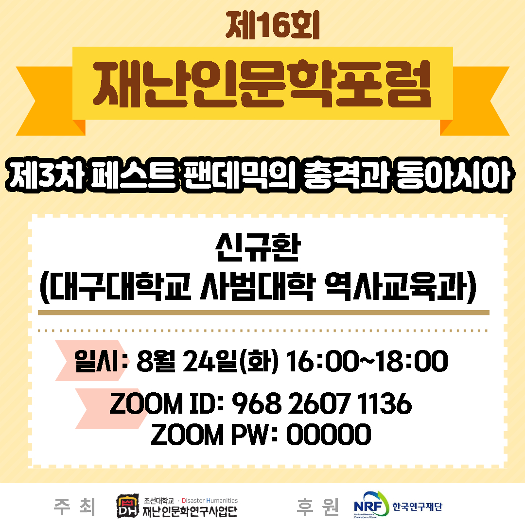 제 16회 재난인문학포럼 제3차 페스트 팬데믹의 충격과 동아시아 - 신규환